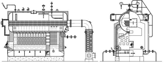 1、鍋爐型式為臥式快裝鍋爐、工質自然循環。 該鍋爐換熱系統由鍋筒、左右集箱、水冷壁組成,主要受熱面有爐膛水冷壁、部分鍋筒和鍋筒內的對流管束。