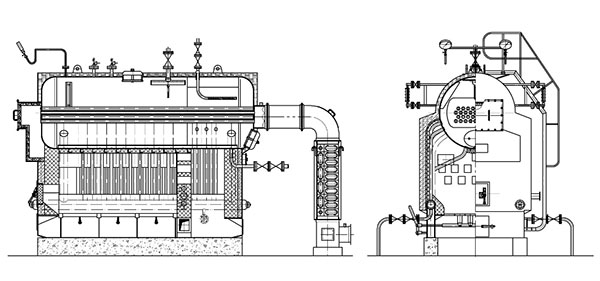 1、鍋爐型式為臥式快裝鍋爐、工質自然循環。 該鍋爐換熱系統由鍋筒、左右集箱、水冷壁組成,主要受熱面有爐膛水冷壁、部分鍋筒和鍋筒內對流管束。