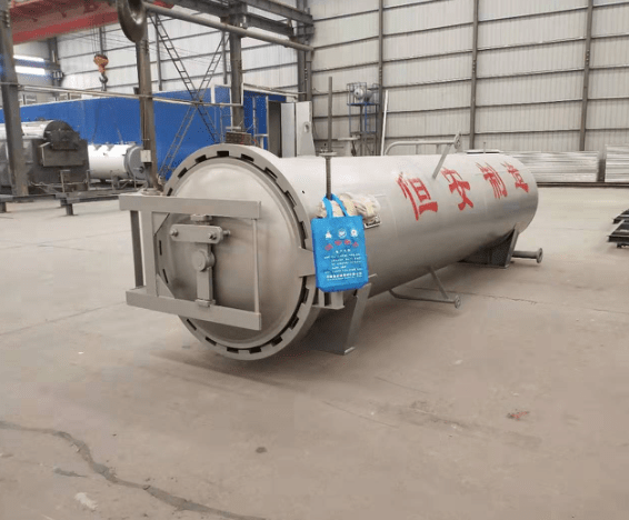 蒸壓釜又稱蒸養釜/壓蒸釜,是對加氣混凝士、灰砂磚、灰磚進行蒸養的大型壓力容器,在釜內完成Cao—Si02—H2O的水熱反應。同時也廣泛用于其它 需壓力蒸養生產工藝過程的生產項目。如高強石膏、保溫材料、橡膠制品、高強玻璃、水泥管樁以及木材、醫藥、化工等行業。本公司還可根據用戶要求設計制造各 種形式的壓力釜,以滿足用戶多種用途的需要。本釜為鋼制臥式筒型裝置,釜蓋采用整塊16MnR鋼板壓制而成。釜蓋法蘭,釜體法蘭采用16Mn整體鍛造加工 而成。受壓部件焊接縫均按相關標準進行了熱處理和嚴格的無損檢測。